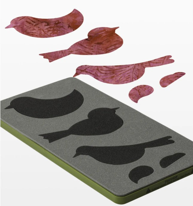 Put a bird on it! Make any project a little more fun and whimsical with this collection of cute birds. The GO! Birds die features sharp yet ultra-safe blades that precisely cut three different birds and two wing styles. Birds are a favorite appliqué motif for quilters. You'll love adding them to clothing, gift tags, home decor and more. Want to make a quick applique? Simply apply fusible web to the wrong side of fabrics prior to cutting for quick and you're set! Cut Size: Wide Bird: 3 1/2"W x 4 1/2"H (8.9 cm x 11.4 cm), Pointed Tail Bird: 2 3/4"W x 5 3/8"H (7.0 cm x 13.7 cm), Rounded Tail Bird: 3"W x 5 1/4"H (7.6 cm x 13.3 cm), Wing: 1 1/4"W x 1 1/2"H (3.2 cm x 3.8 cm), Wing: 7/8"W x 1 7/8"H (2.2 cm x 4.8 cm)