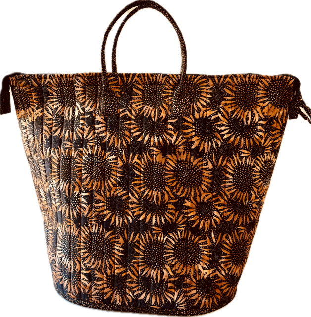 Big zipper top bag designed by Aunties Two with six pockets on the inside to keep everything organized. Haul your towels and toys to the beach, haul your blankets and jeckets to the boat or your quilts to show and tell! Finished size for this very large bag is 20" tall x 18" wide x 12" deep. Sample made by Aunties Two.
